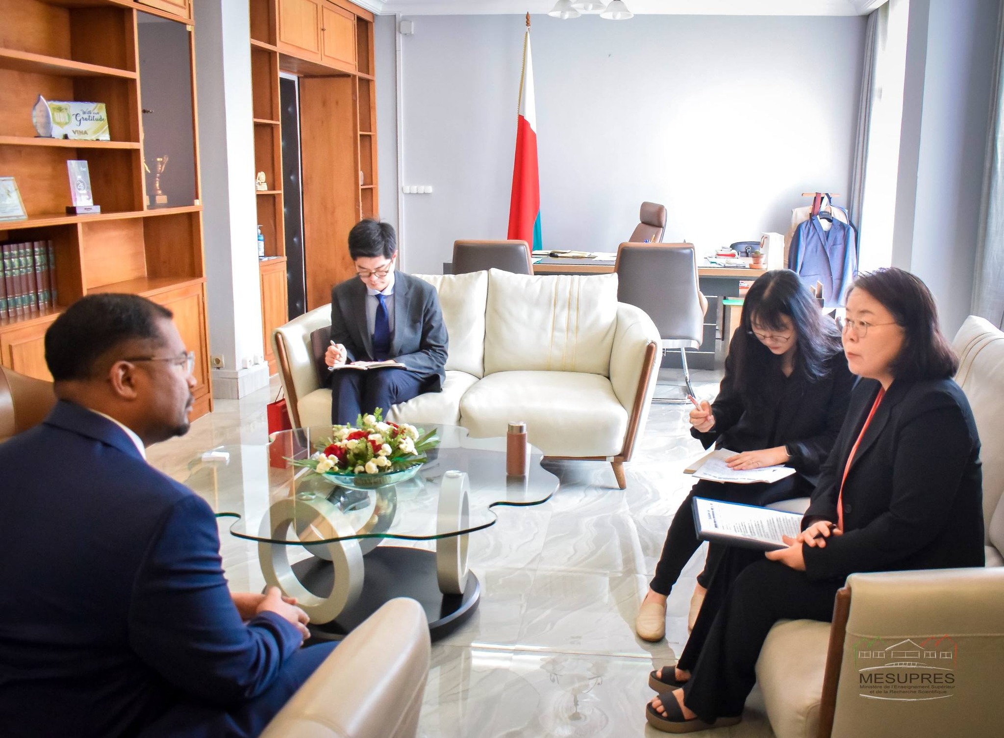 Noraisin’ny Minisitry ny Fampianarana Ambony sy ny Fikarohana Ara-tsiansa Pr RAVONIMANANTSOA Ndaohialy Manda-Vy, teto Fiadanana ny Masoivohon’ny Repoblikan’i Korea eto Madagasikara, Ramatoa Park Ji-hyun, anio 16 janoary 2026.