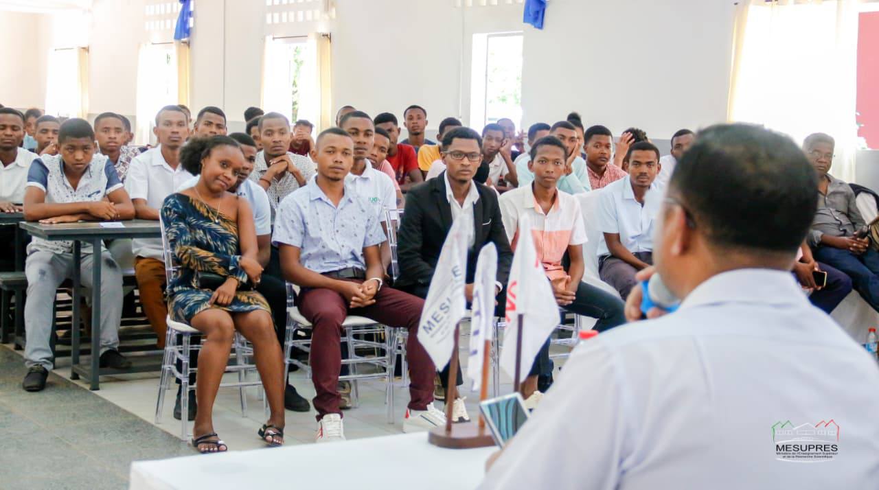 Nandritra ny fandalovany tao Mahajanga ny 5 martsa 2026 dia nihaino sy nitafa mivantana tamin’ireo tokotelo mahamasanahandron'ny fampianarana ambaratonga ambony (mpampianatra, mpianatra, mpandraharaha) ny Minisitry ny Fampianarana Ambaratonga Ambony sy ny Fikarohana Ara-tsiansa, Pr RAVONIMANANTSOA Ndaohialy Manda-Vy.